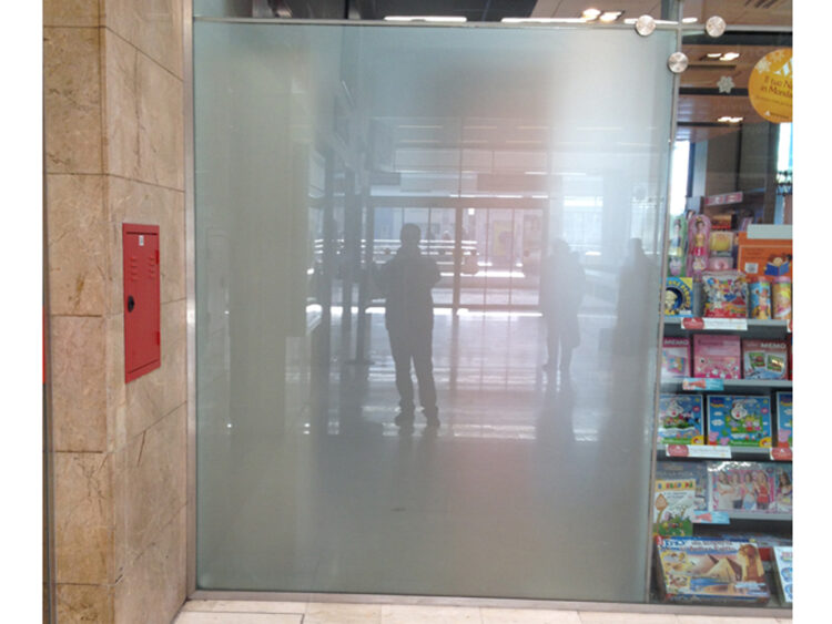 Copertura vetrate libreria con adesivi effetto sabbiato