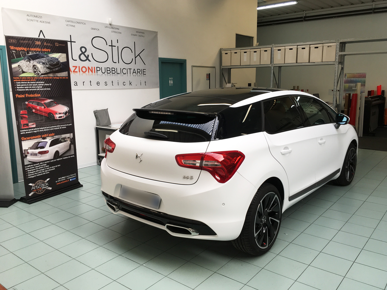Rivestimento completo DS5 con pellicola cast da car wrapping “3M 1080 bianco opaco”.
