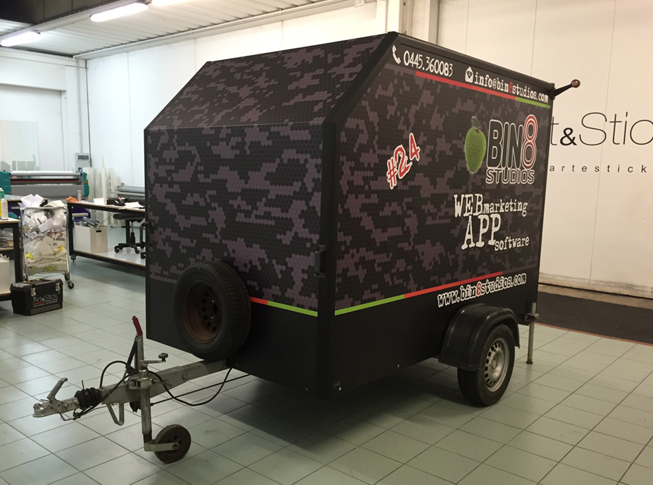 Decorazione carrello portamoto adesivi stampati binotto bin8 motocross
