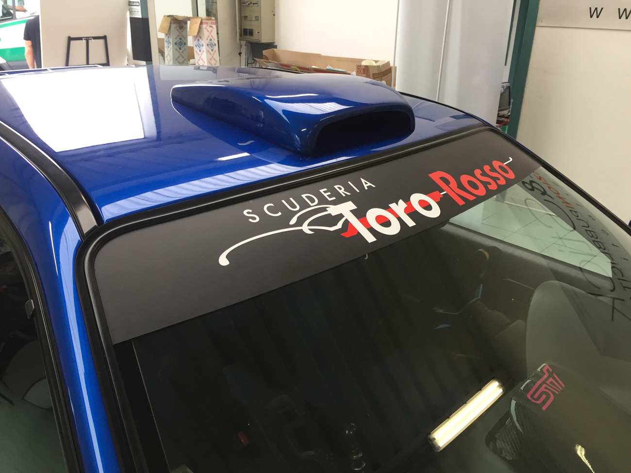 fascia parasole personalizzata subaru impreza sti toro rosso