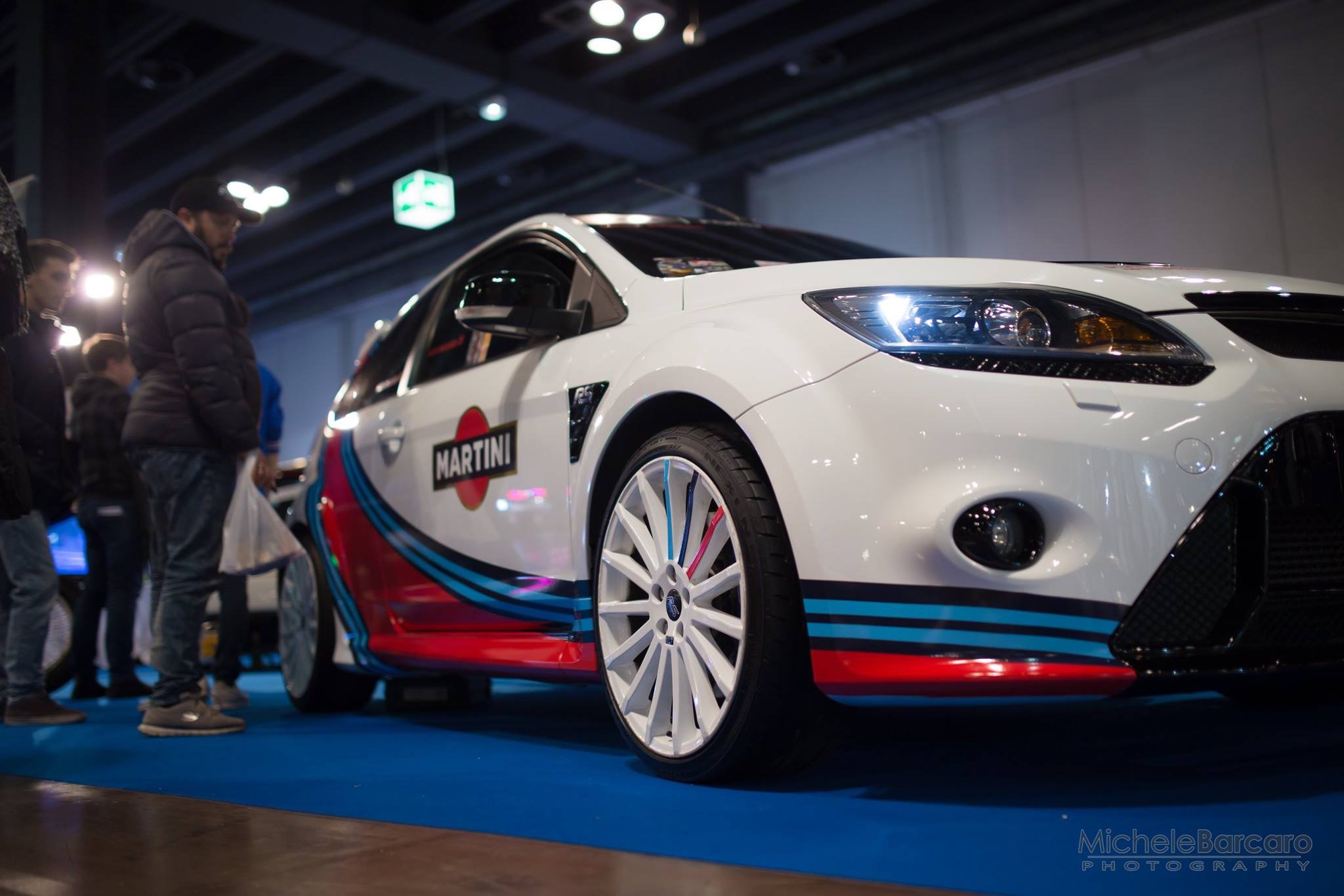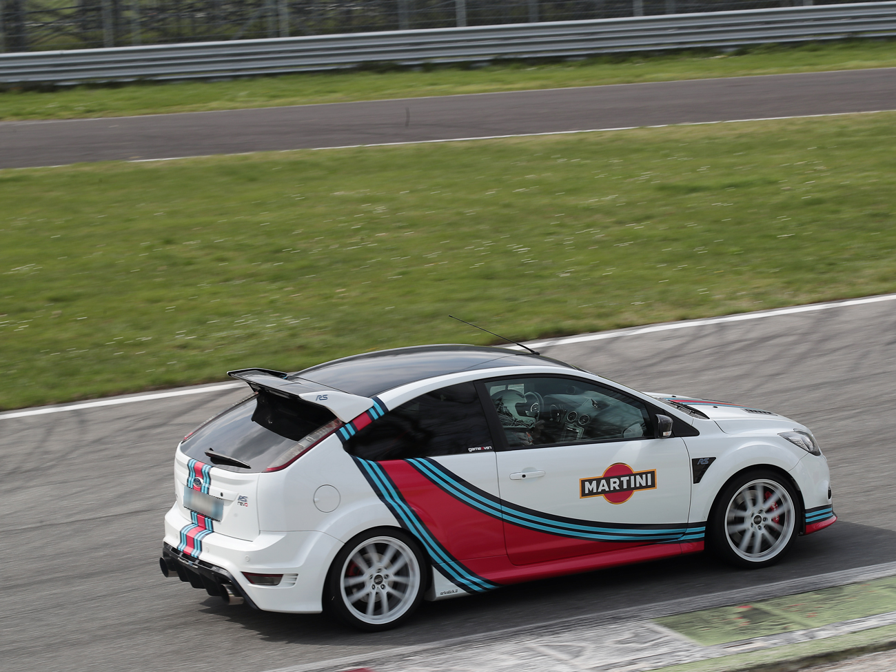 Progettazione grafica e creazione livrea “Martini Racing” personalizzata su Ford Focus RS, realizzata con pellicola stampata da car wrapping.