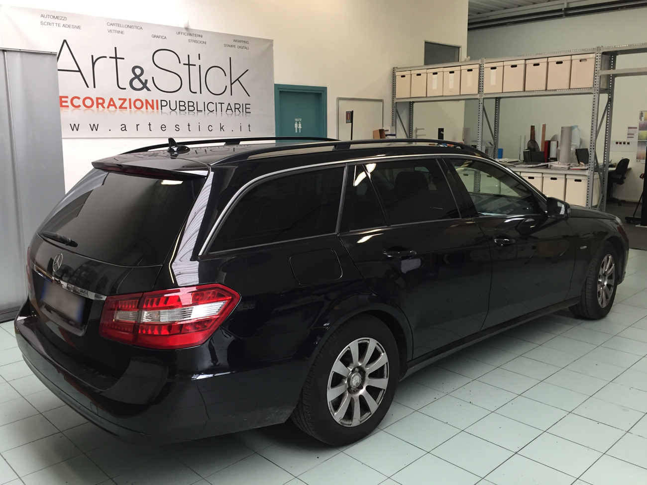 Pellicole solari e di sicurezza (massimo oscuramento, gradazione 05) su portiere posteriori e lunotto posteriore.