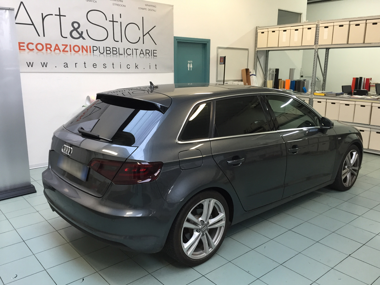 Audi A3, Volkswagen Golf, Audi A5, BMW X1, Fiat Multipla – pellicole solari e di sicurezza (massimo oscuramento, gradazione 05) su portiere posteriori e lunotto posteriore.