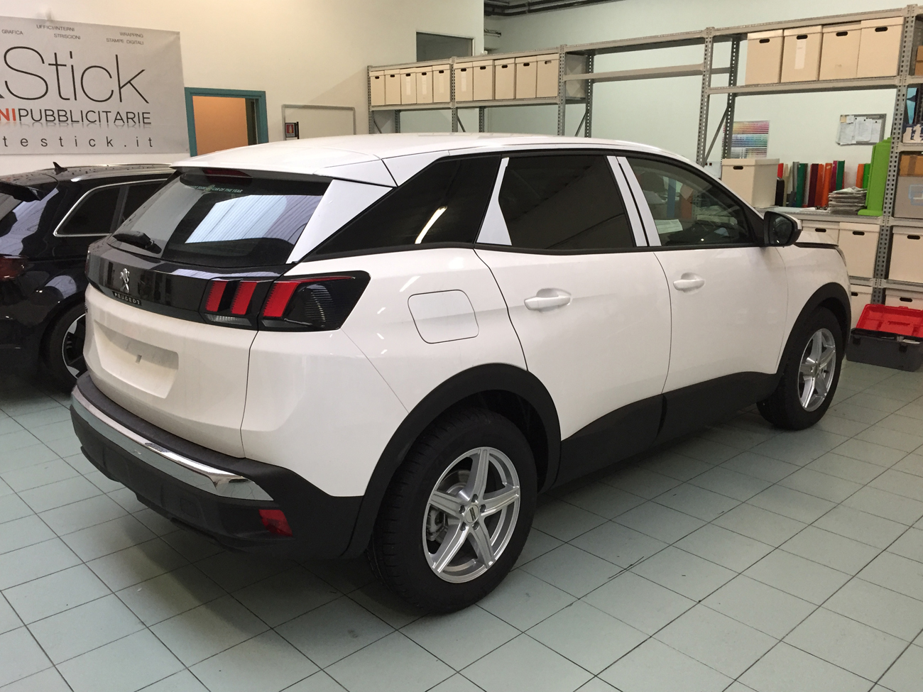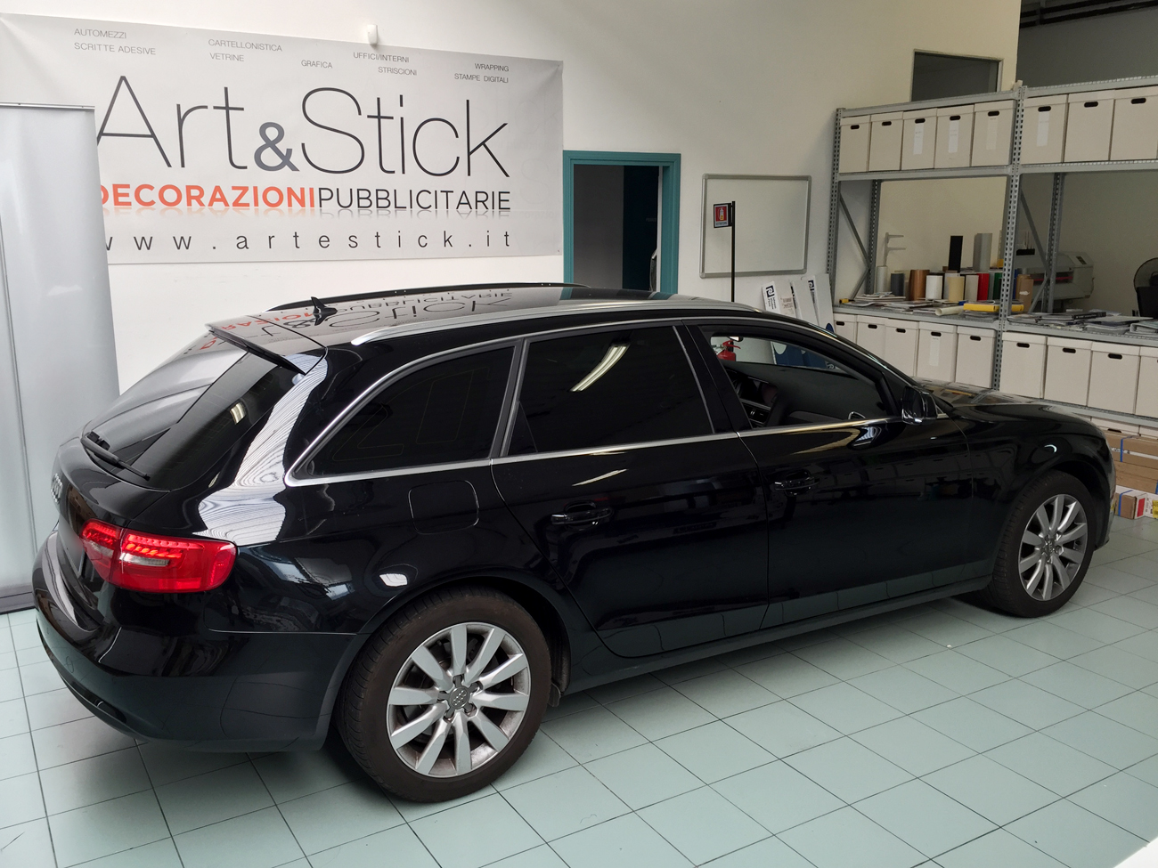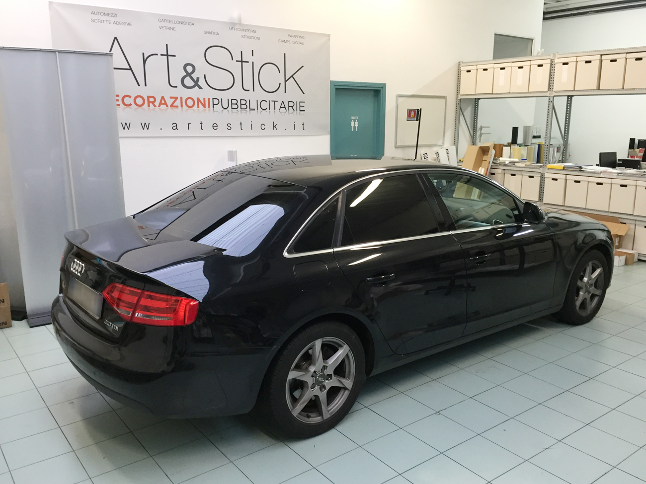 BMW Serie 1, Fiat Punto, BMW Serie 3, Audi A4 Avant, Audi A4, Peugeot 3008 – pellicole solari e di sicurezza (massimo oscuramento, gradazione 05) su portiere posteriori e lunotto posteriore.
