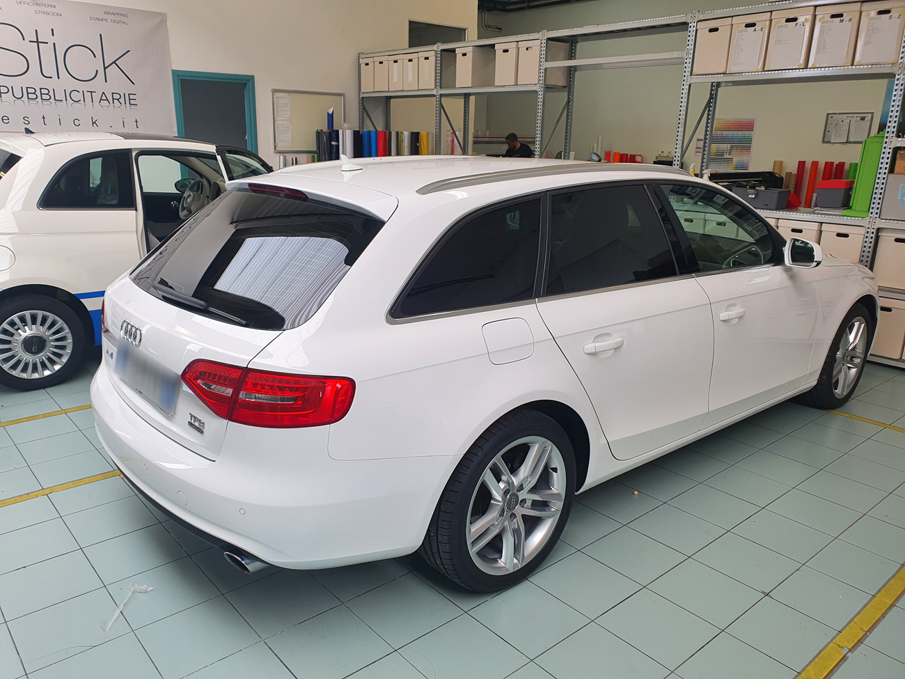 Audi A4 avant, Volkswagen Golf, Citroen Jumpy – pellicole solari e di sicurezza (massimo oscuramento, gradazione 05) su vetri posteriori e lunotto posteriore.