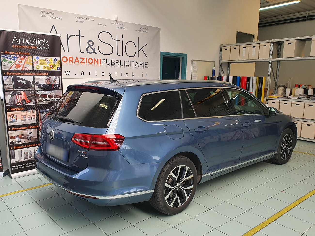 Audi RS4 avant, BMW serie 2 Active Tourer, BMW serie 5 station wagon, Skoda Octavia station wagon, Volvo V70, Peugeot Rifter, Volkswagen Passat, Audi A4 avant, Fiat Panda – pellicole solari e di sicurezza (medio oscuramento, gradazione 15 e 20) su vetri posteriori e lunotto posteriore.