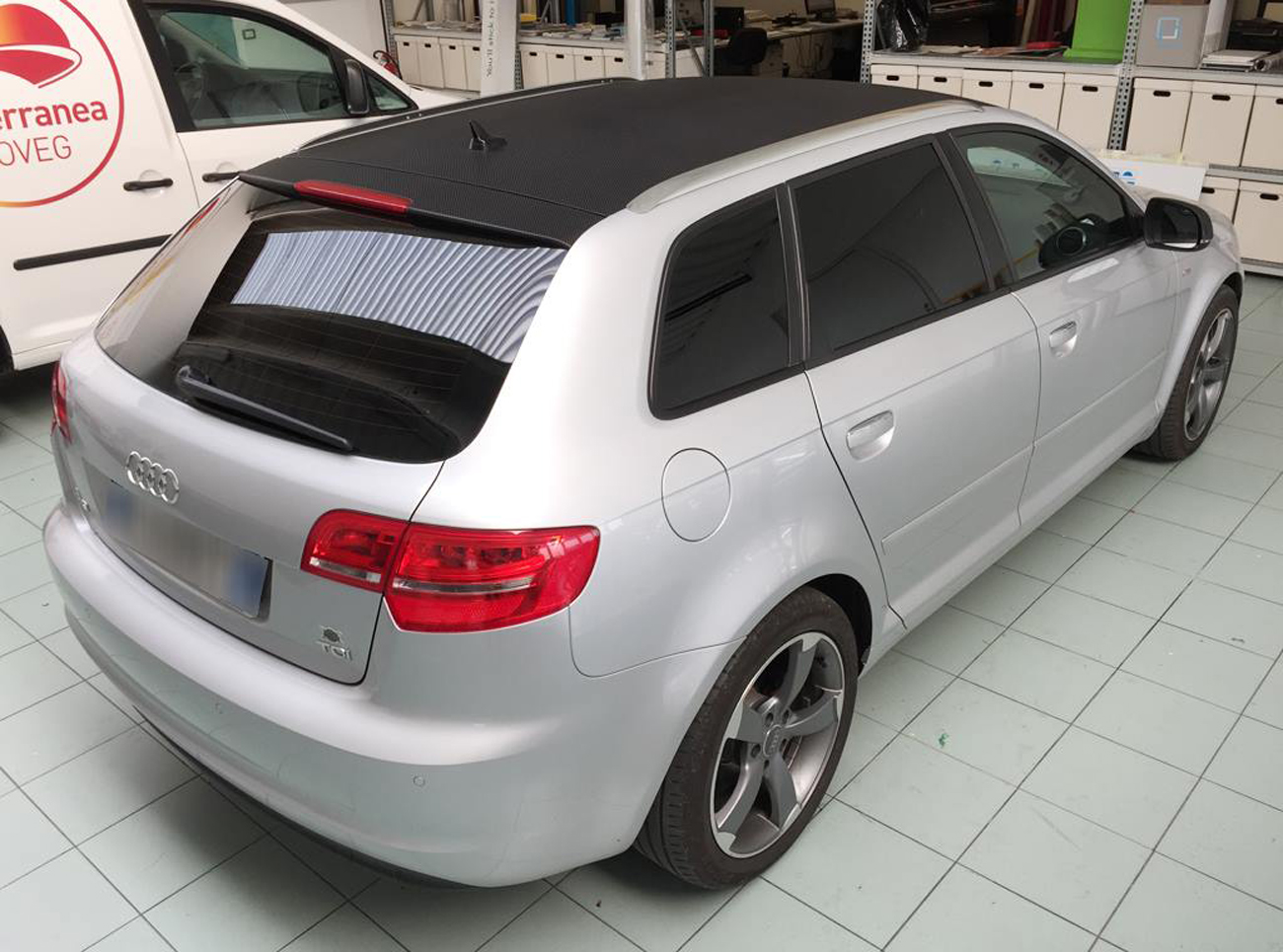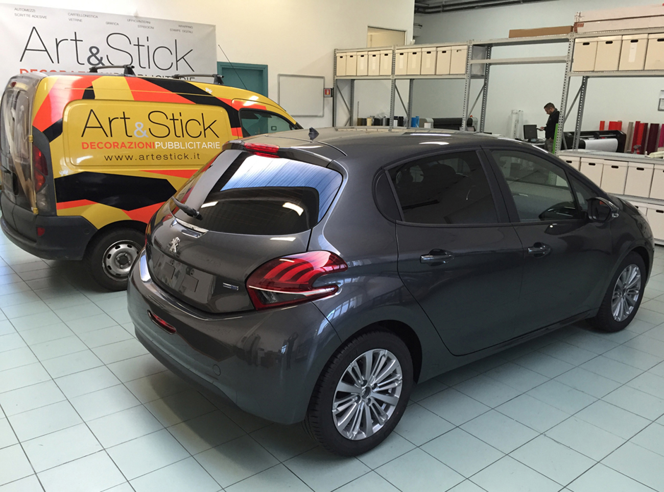 Peugeot 308, Peugeot 2008, Audi A3, BMW serie 1, Audi A3 sportback – pellicole solari e di sicurezza (massimo oscuramento, gradazione 05) su portiere posteriori e lunotto posteriore.