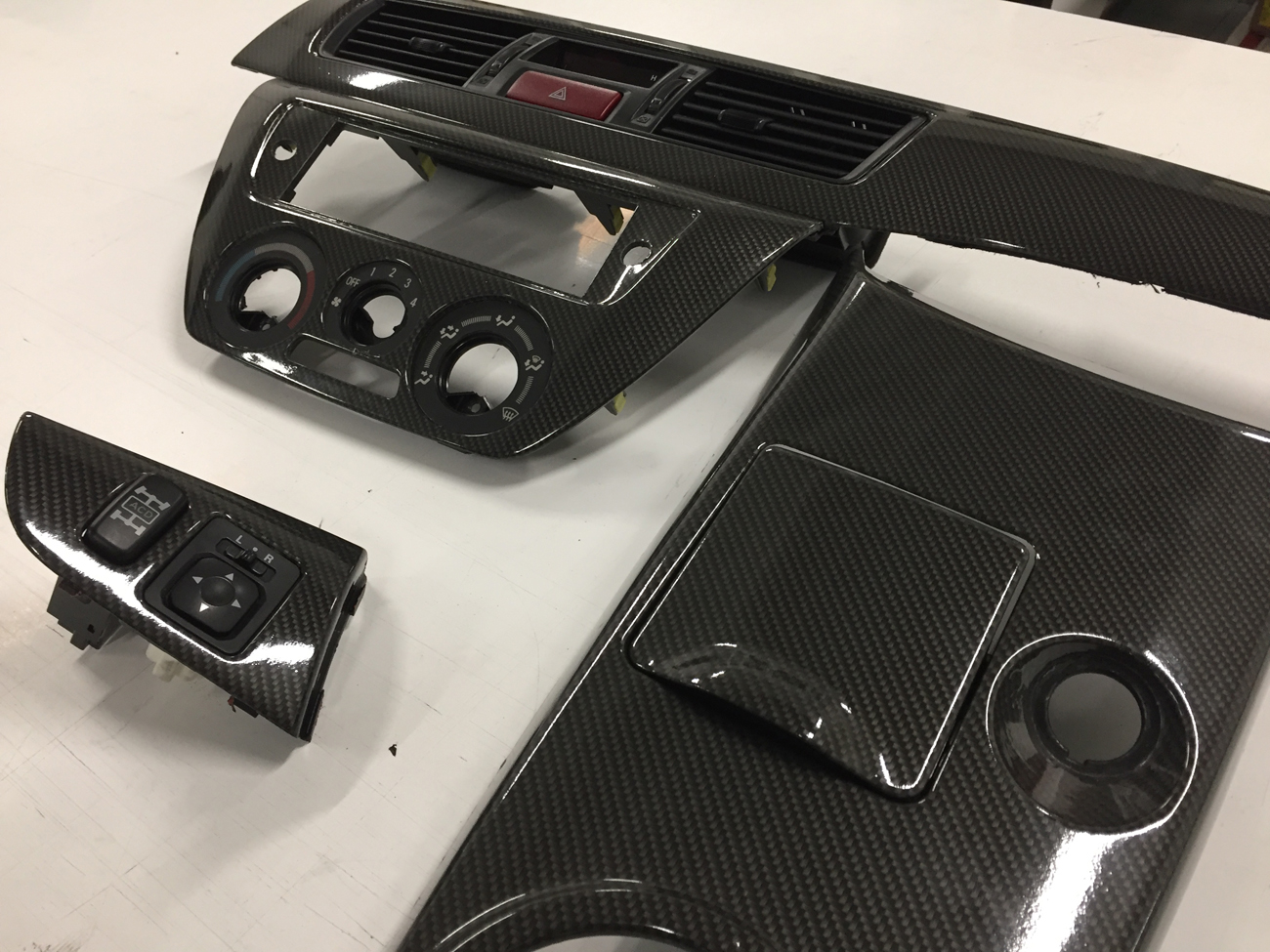 Rivestimento interni Mitsubishi lancer evo pellicola effetto carbonio lucido car wrapping