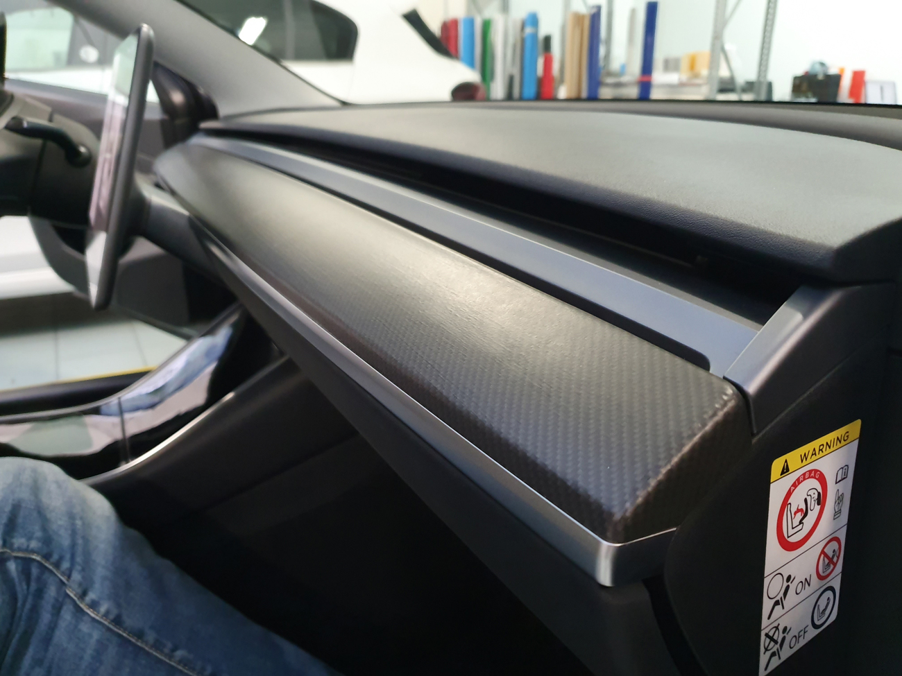 Rivestimento interni Tesla model 3 con pellicola effetto carbonio opaco