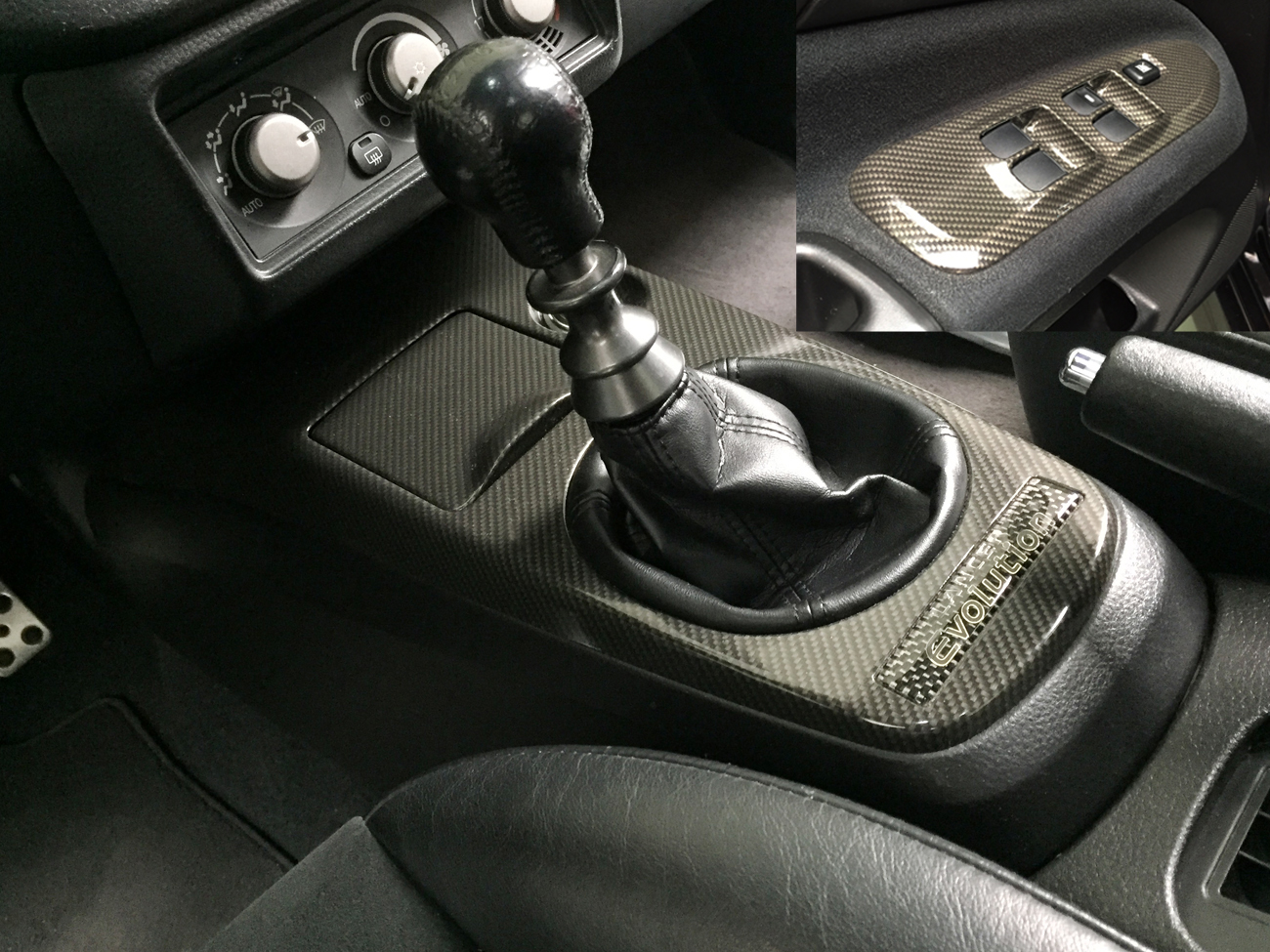 - Mitsubishi Lancer Evo – Personalizzazione interni con pellicola effetto carbonio lucido