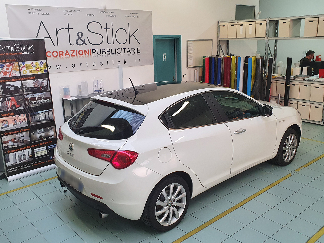 • Alfa Romeo Giulietta – Rivestimento tetto e specchietti con pellicola nero lucido