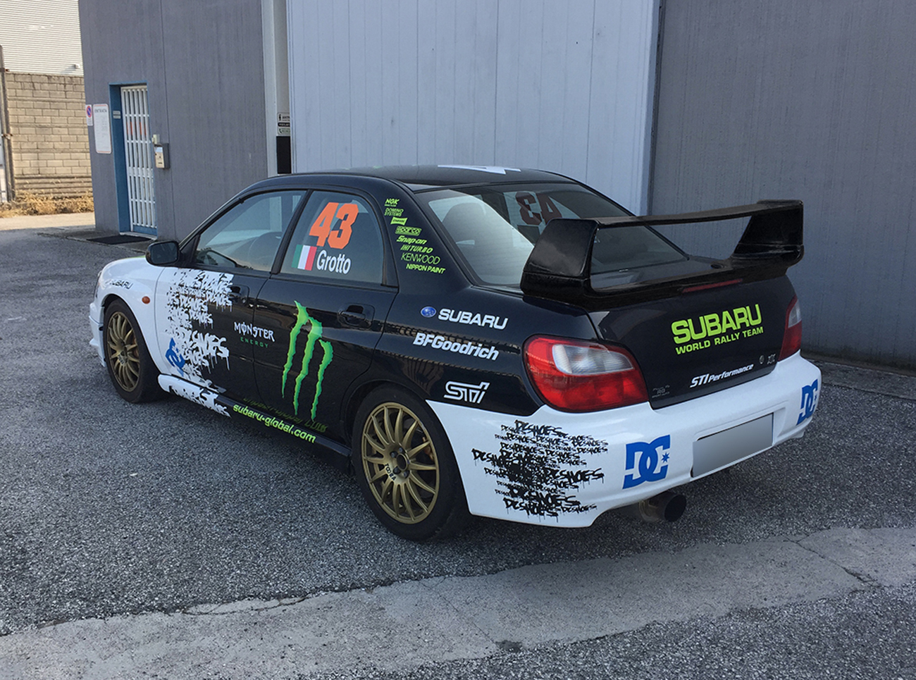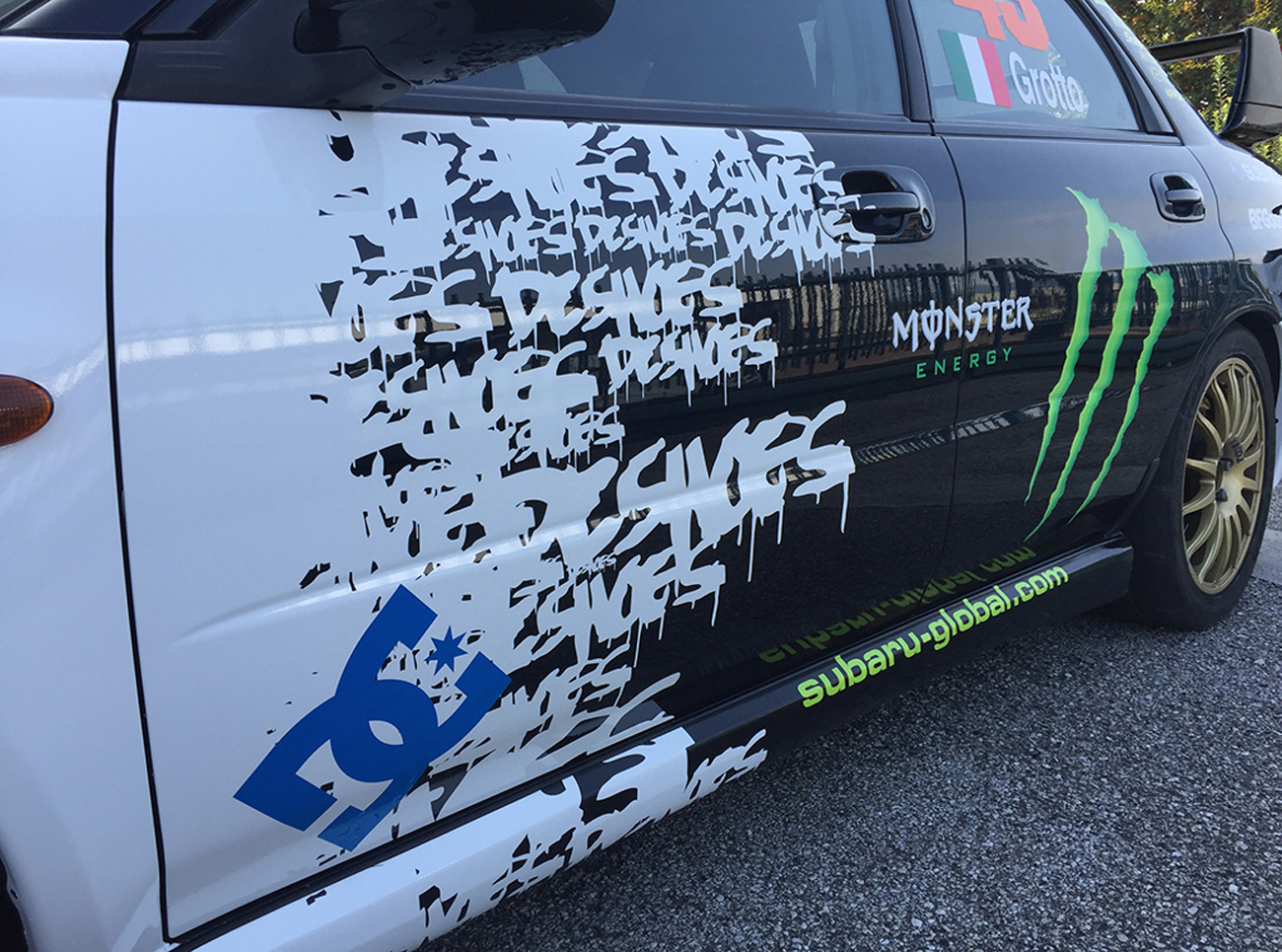 Progettazione grafica e realizzazione livrea con adesivi stampati, adesivi prespaziati e adesivi da car wrapping.