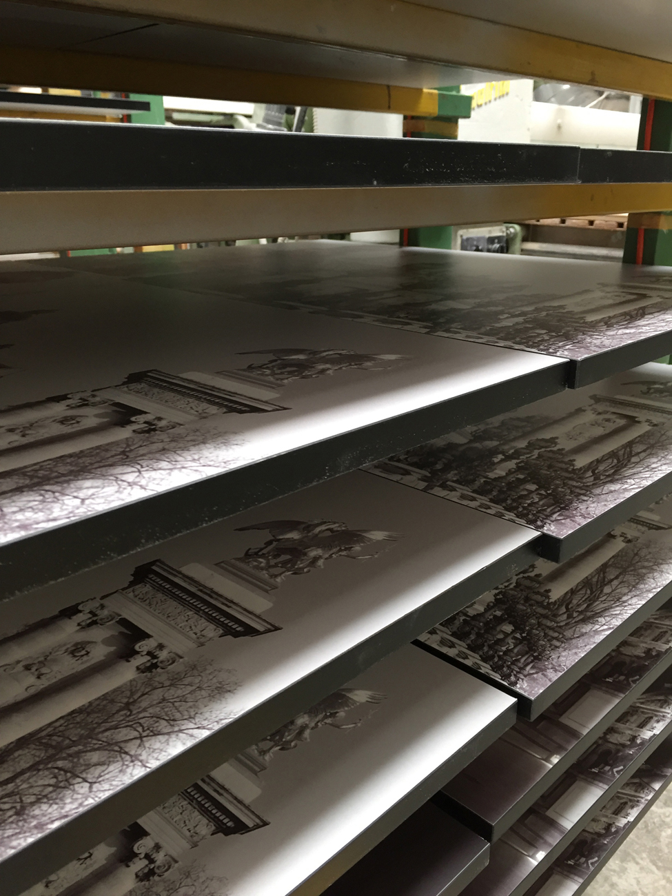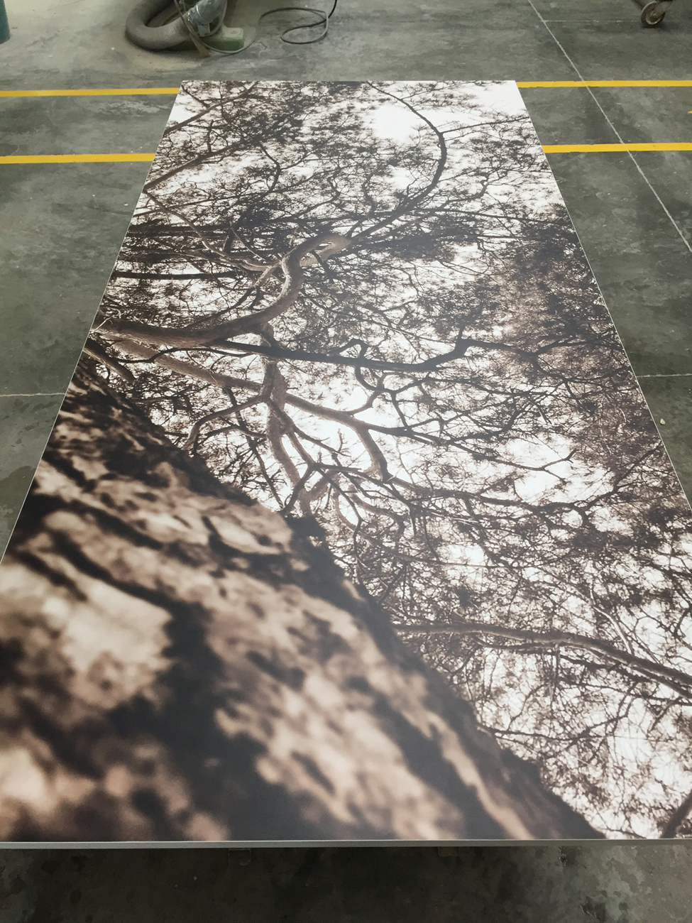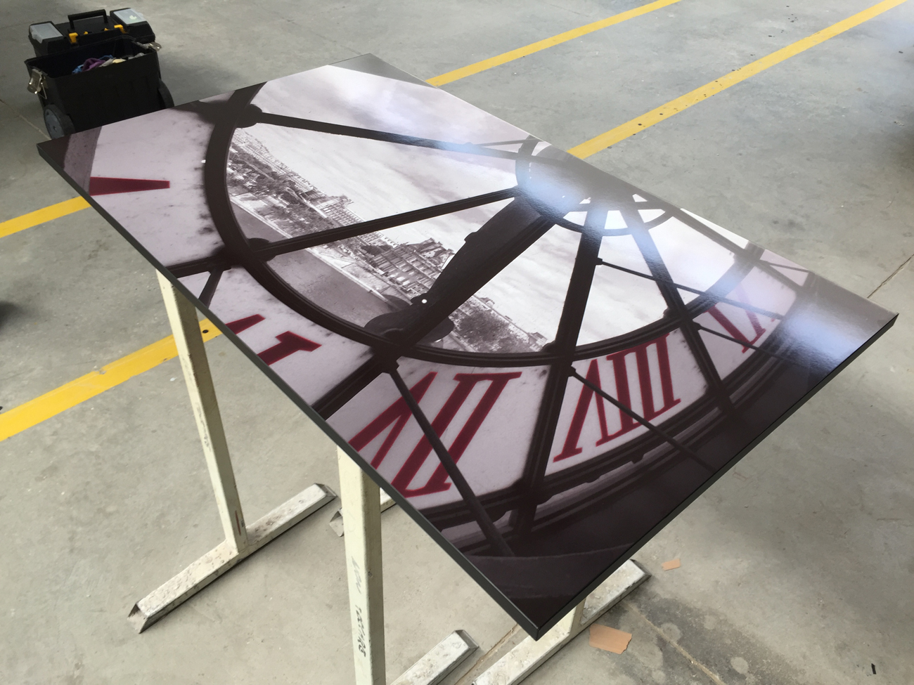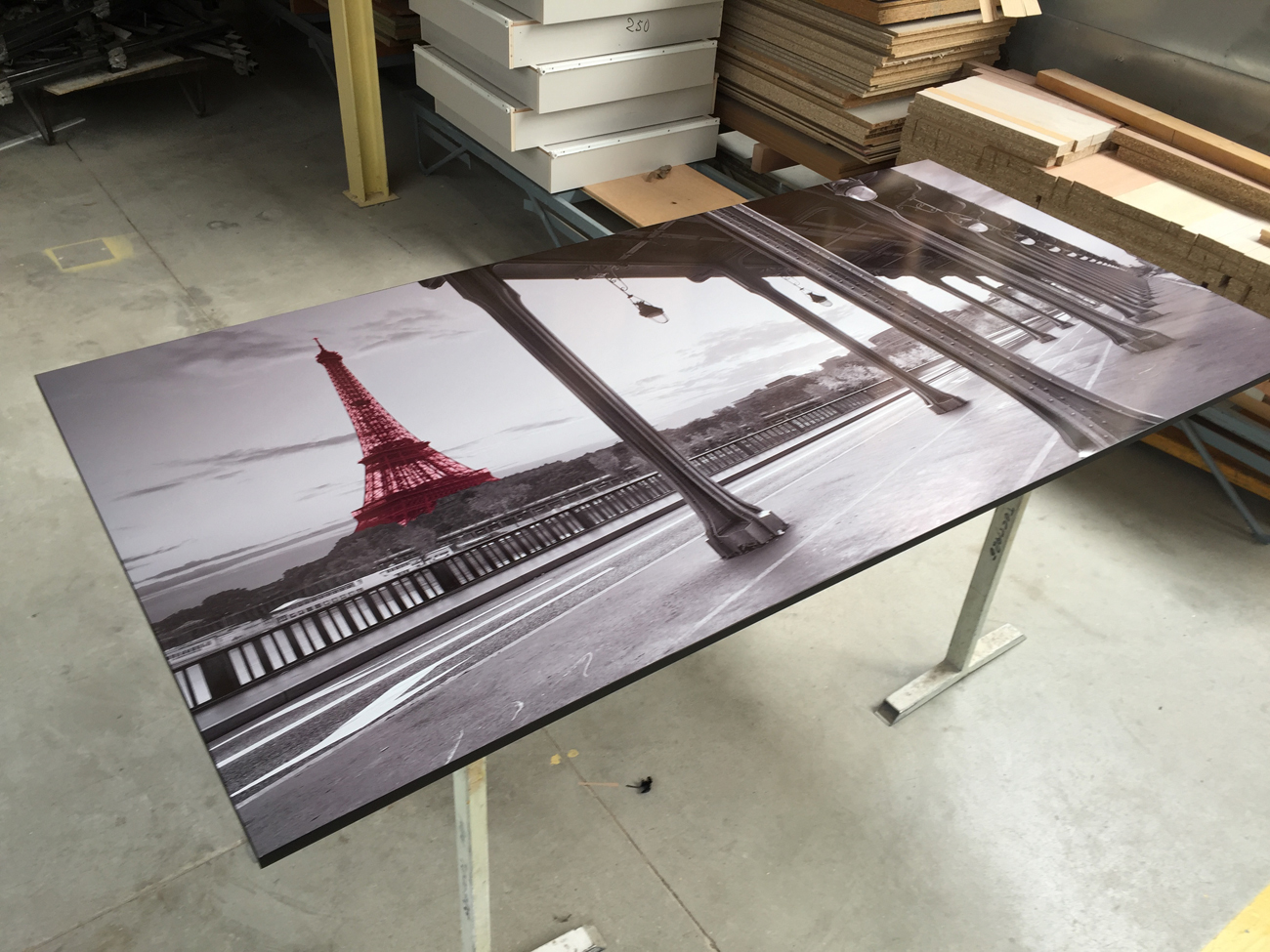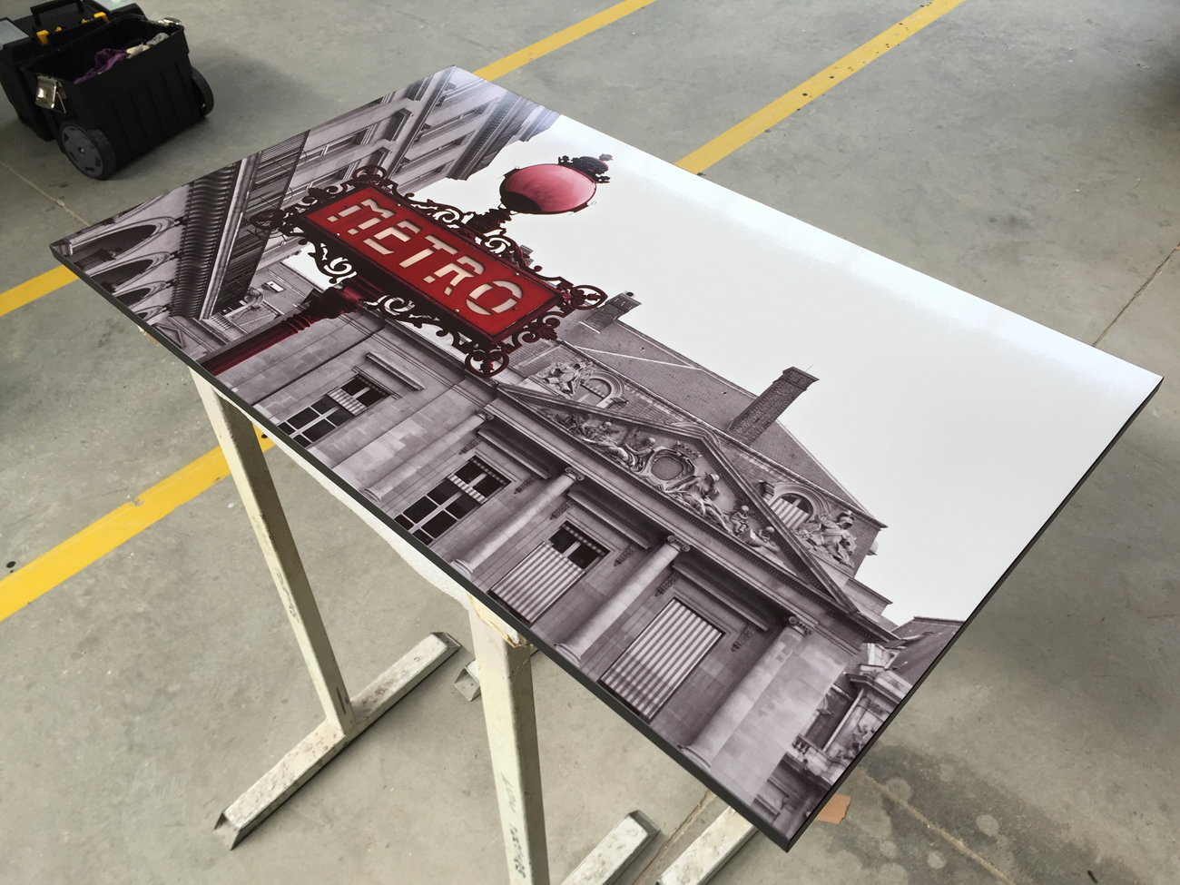 Lavorazione: alcuni esempi di interior decoration. Adesivi stampati in digitale applicati su arredamenti in legno, su vetrate e su fotoquadri.